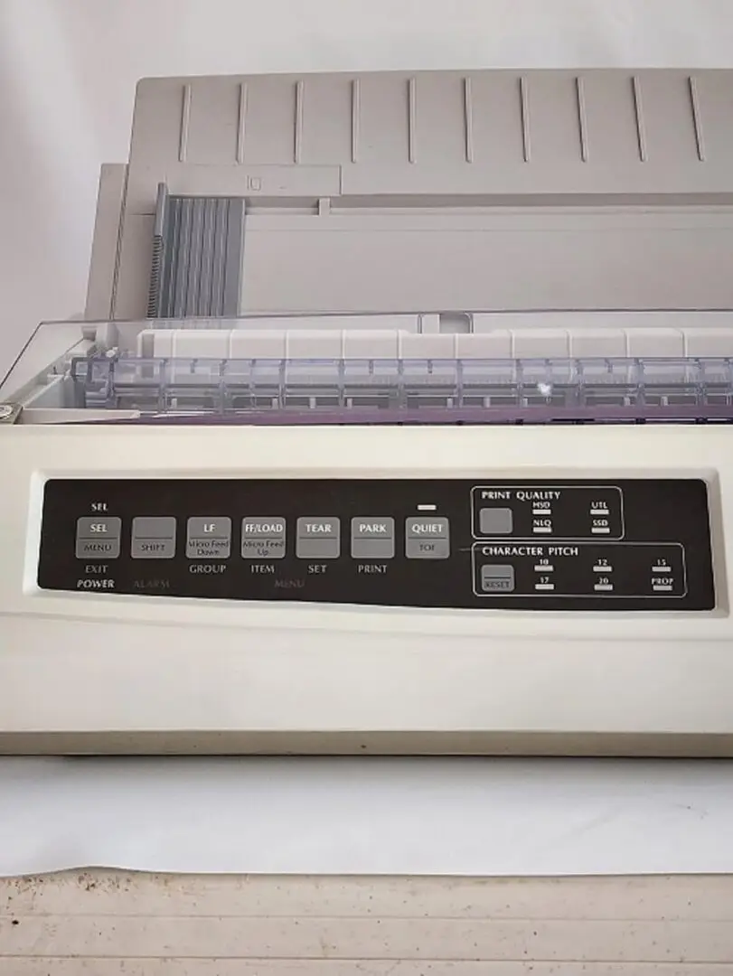 They use continuous feed paper with tractor feed mechanisms, suitable for multi-part carbon copy forms.