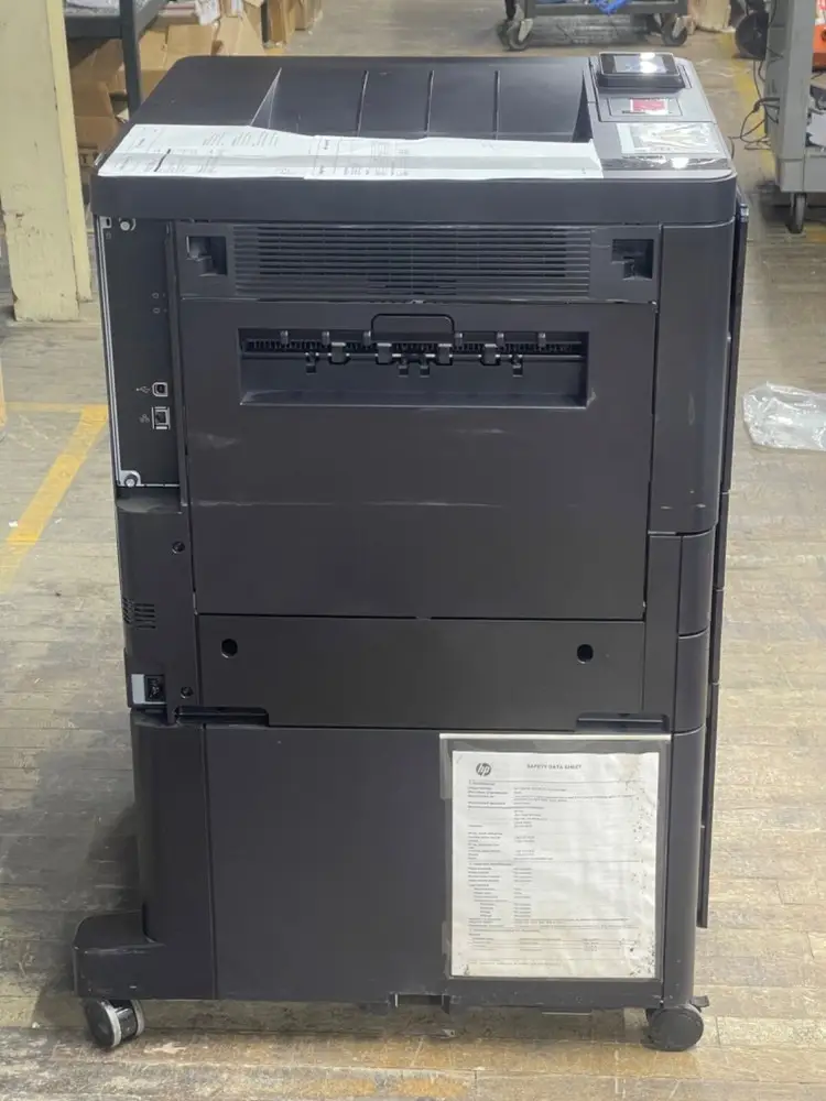 The On Brand M806x+ (CZ245A) is a monochrome laser printer targeting enterprise-level office environments requiring robust printing performance. It supports print speeds up to 56 pages per minute and features a maximum monthly duty cycle of up to 300,000 pages, ensuring reliability in intensive tasks. This device uses laser electrophotography technology combined with HP's Precision Print System to produce sharp text and high-quality monochrome output. Connectivity options include Gigabit Ethernet, USB 2.0, and optional wireless networking, enabling versatile integration into office networks. The printer is compatible with a range of paper sizes and types, including envelopes and cardstock, with a maximum input capacity expandable to 4,600 sheets. Additionally, it supports PCL 6, PCL 5, and PostScript emulation for broad compatibility with various software and workflows.