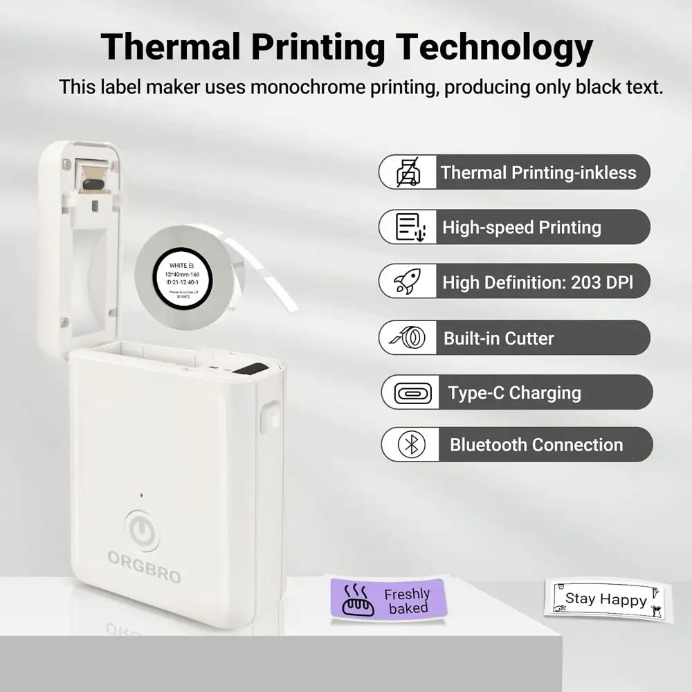 The ORGBRO X1 Label Maker is a compact office printer designed for efficient label production. It utilizes thermal printing technology to deliver crisp, durable labels without the need for ink cartridges. Featuring a maximum print resolution of 300 dpi, the device ensures clear and precise text reproduction. It supports various label sizes accommodating diverse labeling requirements and employs USB connectivity for seamless integration with computers and other office devices. The printer includes an easy-to-use software interface compatible with multiple operating systems, facilitating custom label design and batch printing. Low power consumption and a durable build make the ORGBRO X1 a reliable solution for medium-scale labeling tasks.