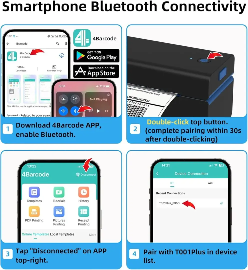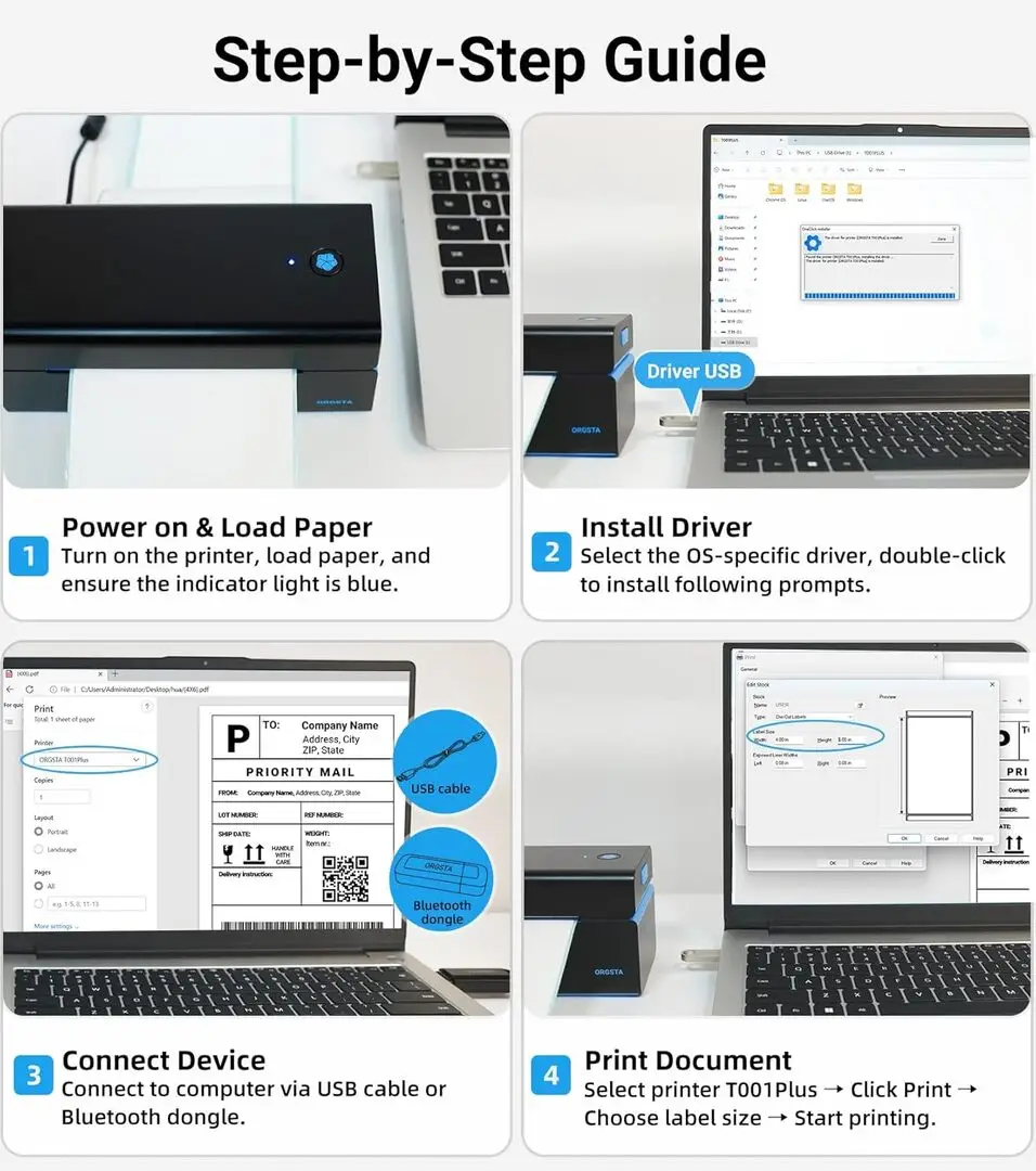 Included Components | 1x Bluetooth dongle, 1x USB-C adapter, 1x power adapter, 50 x thermal labels, T001-Plus Shipping Label Printer |