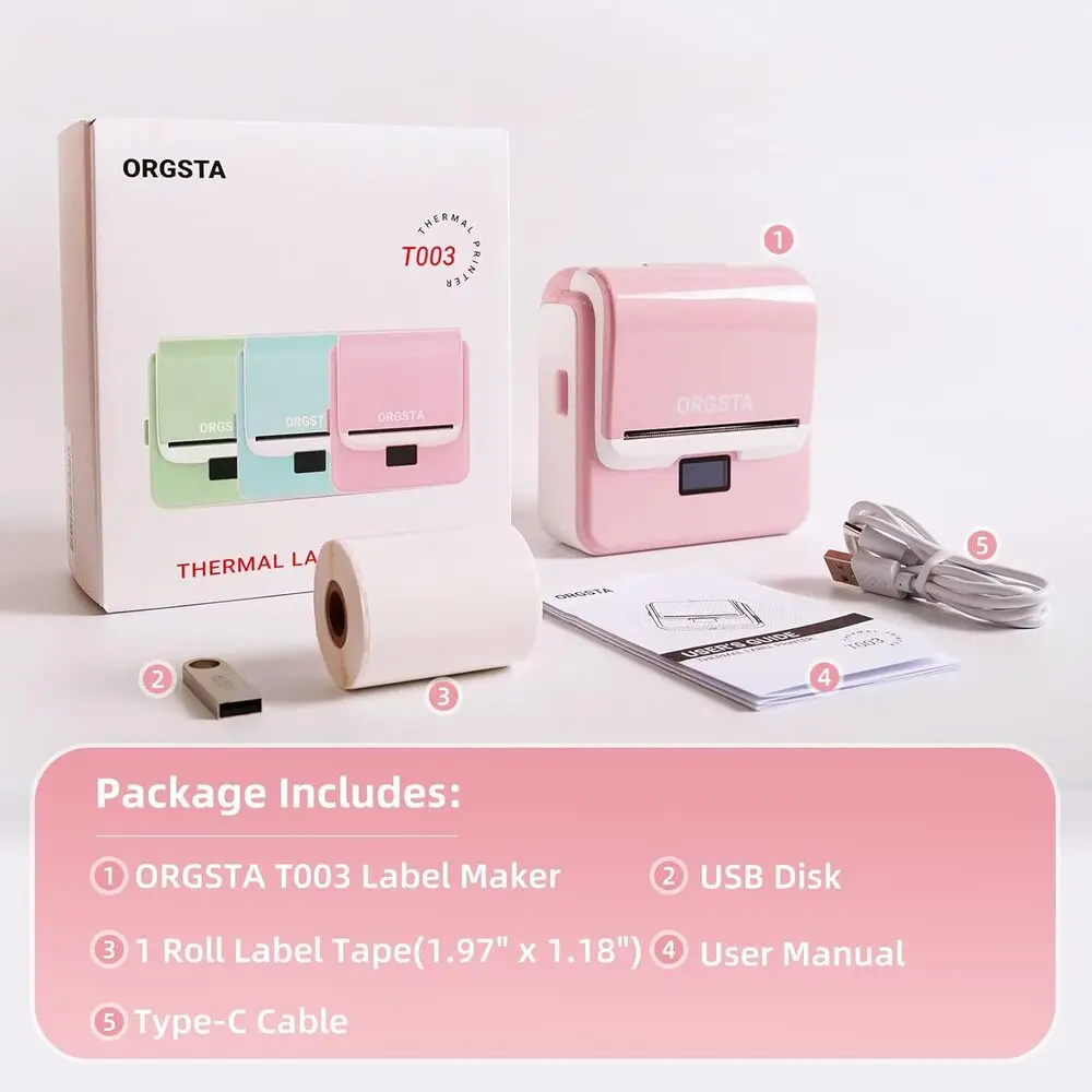 Included Components | 1 Roll Label Tape(1.97"x1.18"), ORGSTA T003 Label Maker, Type-C Cable, USB Disk, User Manual |