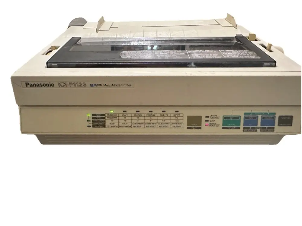 The Panasonic KX-P1123 is a thermal fax printer designed to connect with compatible Panasonic fax machines.