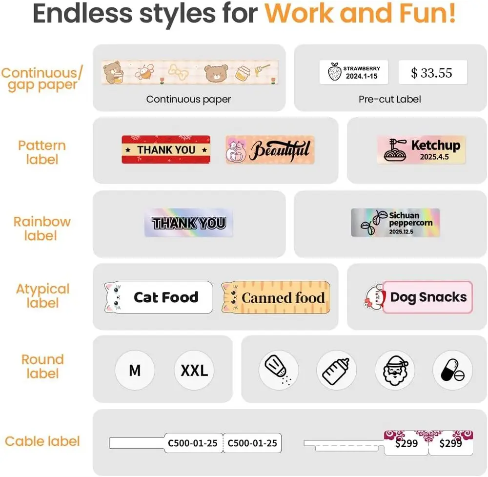 Limited to thermal label types which may restrict label material options. Print speed may be slower compared to higher-end office printers. The label width range might not support extremely large labels needed for specific industrial applications. Bluetooth connectivity, while convenient, depends on device compatibility and may encounter occasional connectivity issues. Battery life, though sufficient for general office use, requires charging after heavy usage sessions. Does not support color printing, limiting it to monochrome label outputs only.