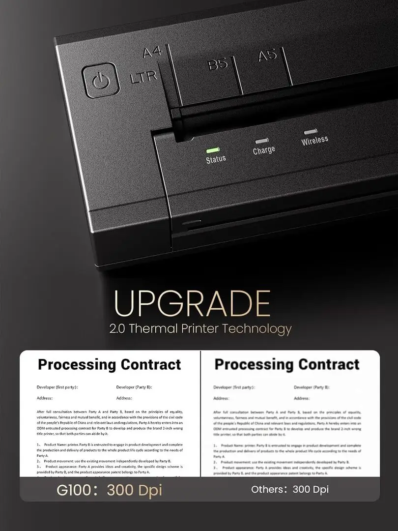 The Phomemo G100-GY-Letter relies solely on thermal paper, which limits its printing options to monochrome outputs only. It does not support wider label rolls beyond the specified maximum width, restricting larger format applications. The printer may face compatibility limitations with some older operating systems or less common software platforms. Wireless connection stability can vary depending on environmental interference. It lacks advanced connectivity options such as Wi-Fi or Ethernet for networked office setups. The absence of a display screen means users must rely heavily on the paired device for operation and status monitoring.