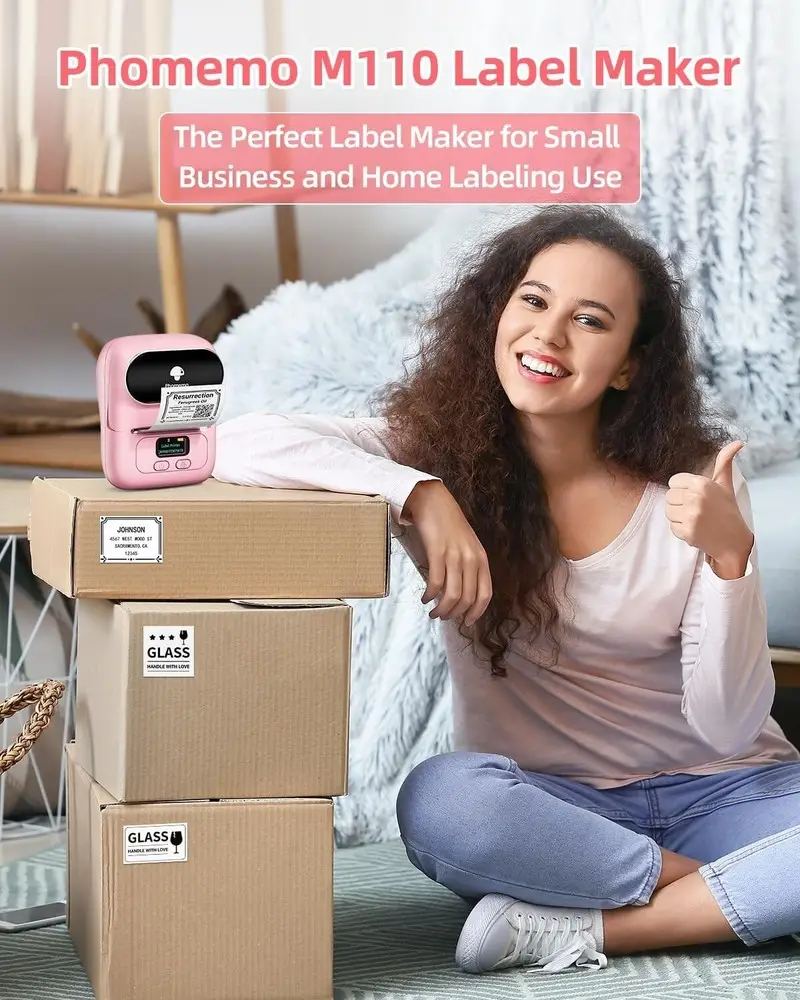 The Phomemo M110S excels with its inkless thermal printing technology, eliminating the need for cartridges and reducing running costs. It supports a wide range of label sizes, making it versatile for different labeling needs. The device's Bluetooth connectivity facilitates wireless printing directly from smartphones, increasing user convenience. Its compact and lightweight design makes it highly portable, ideal for on-the-go labeling tasks. The rechargeable battery offers extended use without frequent recharging interruptions. Additionally, the dedicated mobile app allows easy customization of labels with various fonts, symbols, and templates.