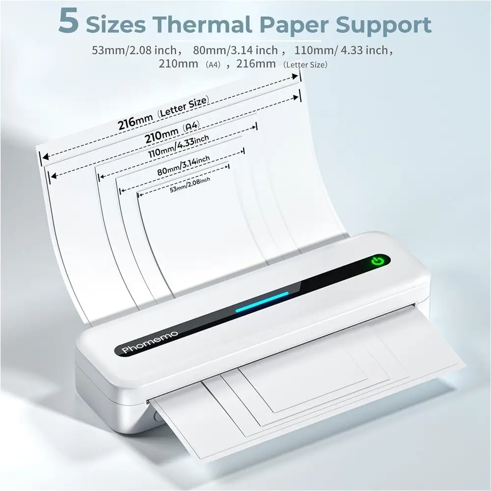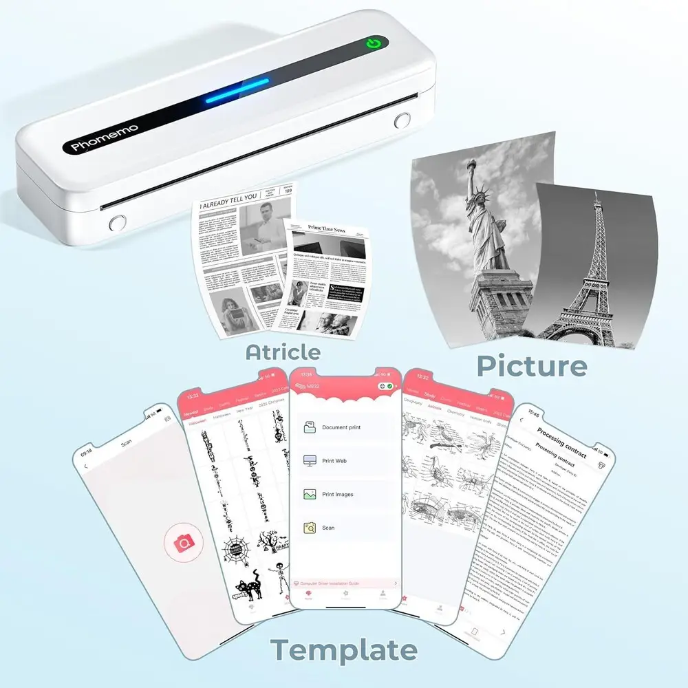 The Phomemo M832 is a compact thermal label printer that utilizes direct thermal printing technology, eliminating the need for ink or toner. It supports Bluetooth 4.0 connectivity, enabling seamless pairing with smartphones, tablets, and PCs for wireless label printing. The device features a print resolution of 203 dpi, producing clear and precise text and barcode labels. Its printing width supports up to 48mm wide labels, compatible with various types of thermal paper rolls. Powered by a rechargeable lithium-ion battery, the printer offers portability for on-the-go labeling needs. The M832 integrates with the Phomemo app, facilitating label design, customization, and quick print commands through an intuitive interface.