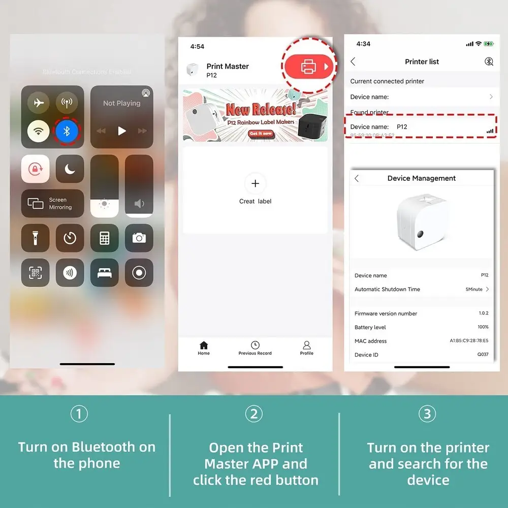 The Phomemo P12's wireless Bluetooth connectivity facilitates easy pairing with multiple devices, promoting flexibility.