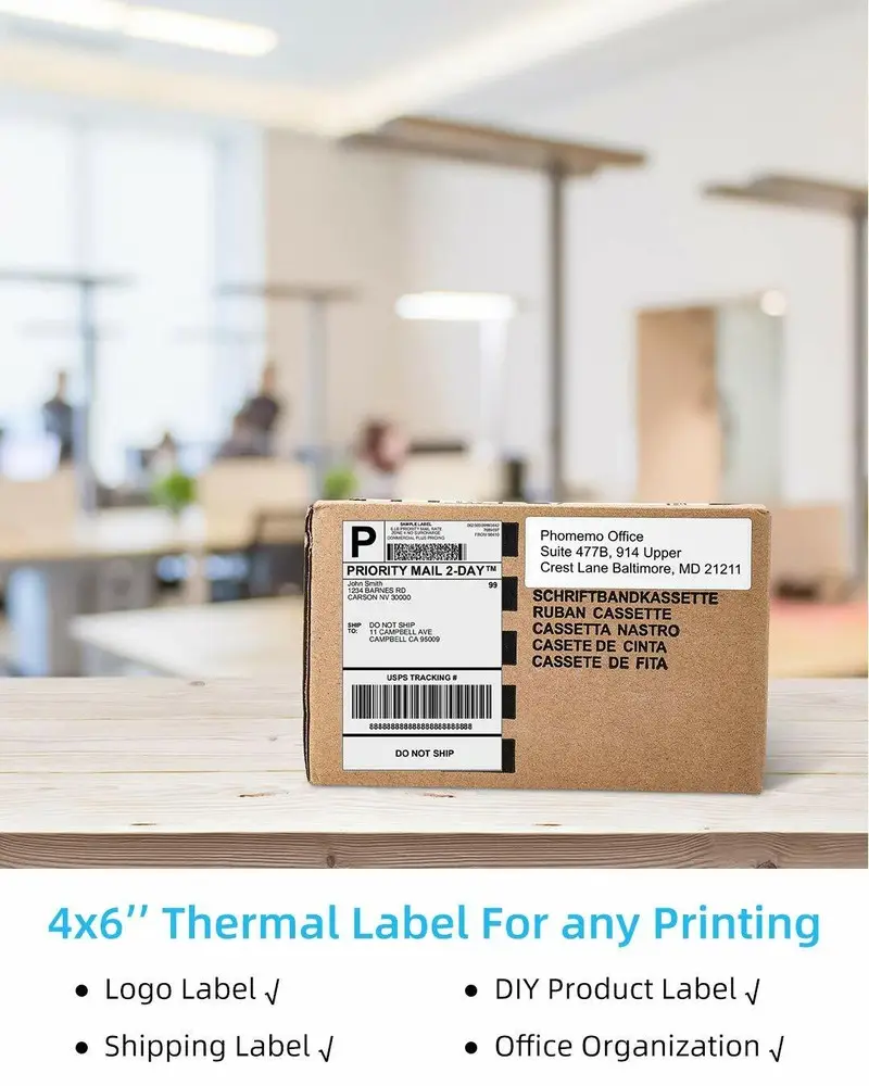 The Phomemo SLP-4×6-500*2 is a specialized label printer designed primarily for office environments requiring high-efficiency print productivity. It supports thermal printing technology, which enables fast, quiet, and ink-free label production. The device features dual 500-label roll capacity, allowing continuous printing without frequent reloading. Its print resolution is optimized for clear barcodes and detailed text, supporting up to 300 dpi. Connectivity options include USB and Bluetooth, enhancing compatibility with various devices and software platforms. The printer's compact yet robust design facilitates easy placement in office settings, while ensuring reliable performance.