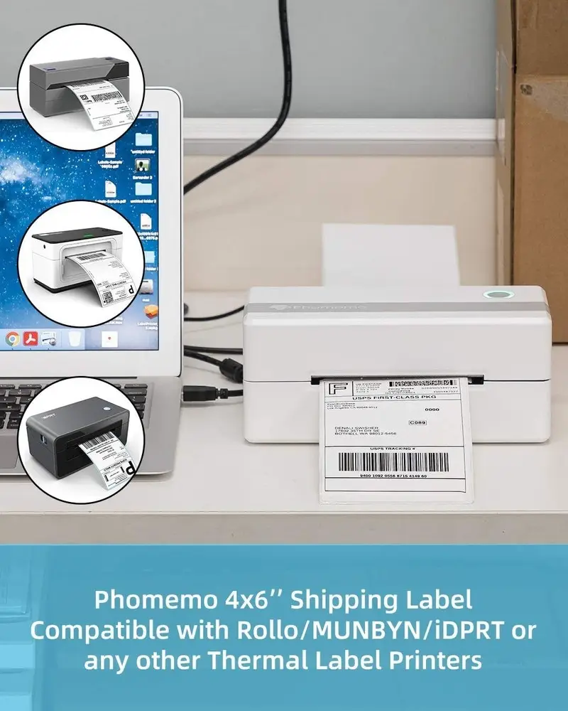 The Phomemo SLP-4×6-500*2 excels in high-volume label printing with its dual 500-roll capacity, significantly reducing downtime. Its thermal technology provides maintenance-free operation without the need for ink or toner. The high 300 dpi resolution ensures sharp and precise label output suitable for professional use. Multiple connectivity options, including USB and Bluetooth, enhance its versatility across different environments. The compact design maximizes space efficiency within office settings. User-friendly controls and compatibility with common label design software simplify daily operations.
