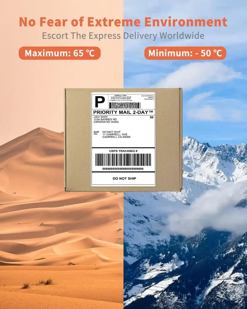 It has a printing resolution of 203 dots per inch (dpi), which is standard for clear label printing.