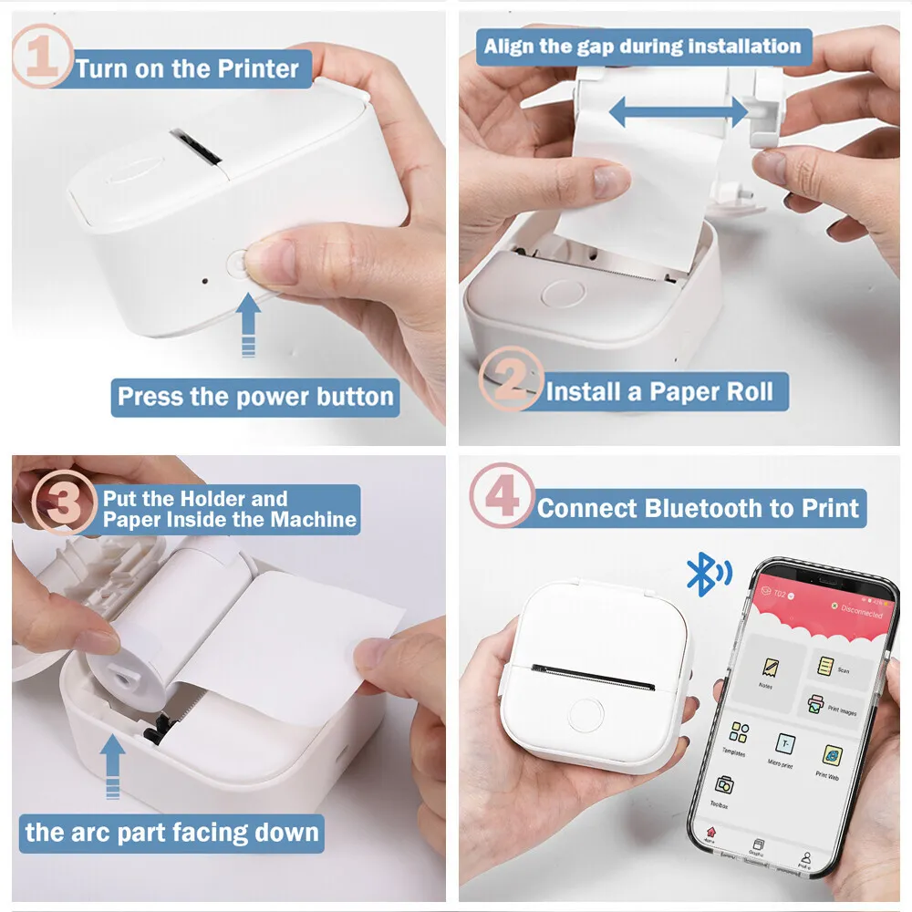 The Phomemo T02 is a compact thermal printer designed primarily for office label printing tasks. It leverages direct thermal printing technology that eliminates the need for ink or toner cartridges, providing a clean and maintenance-free operation. The T02 supports printing on a variety of label sizes with a maximum print width of approximately 48mm, targeting labels, tags, and receipts. It connects effortlessly via Bluetooth 4.0, enabling compatibility with various devices including smartphones, tablets, and PCs through dedicated apps. The printer boasts a resolution of 203 dpi, sufficient for clear text and simple graphics. Its lightweight and portable design facilitates mobility and usage across different office environments efficiently.