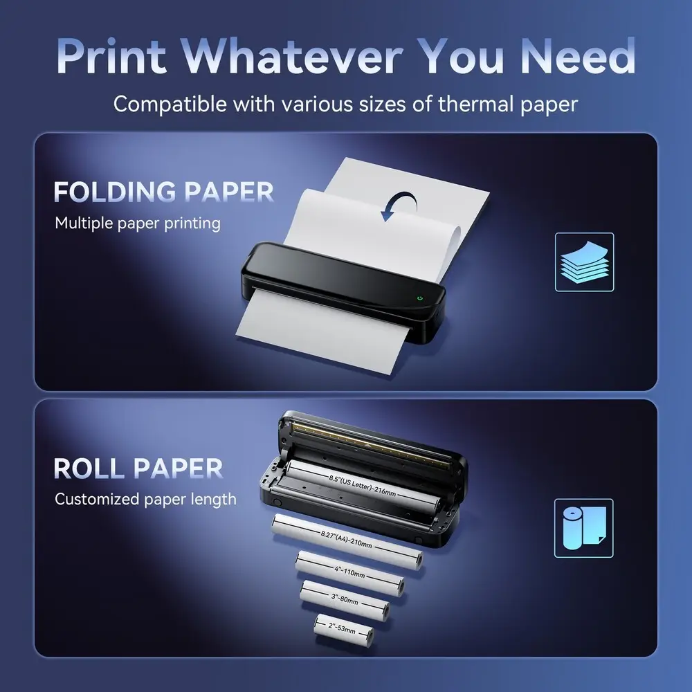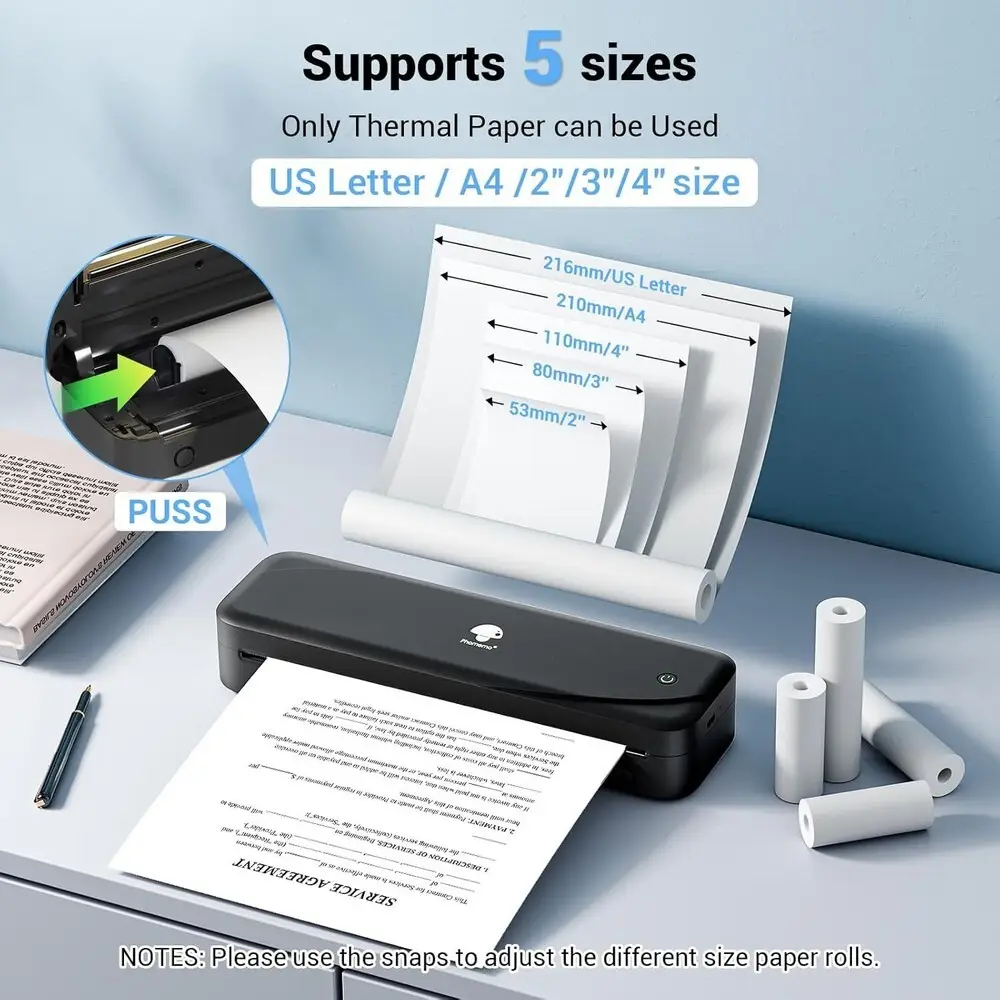 | Included Components | Thermal Paper Rolls (Adhesive & Non-Adhesive), USB Charging Cable, Storage Bag, Manuals |