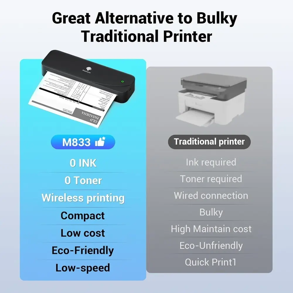 The Phomemo M833 utilizes direct thermal printing technology, which requires no ink or toner.