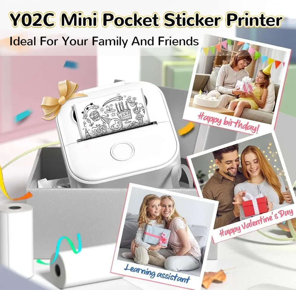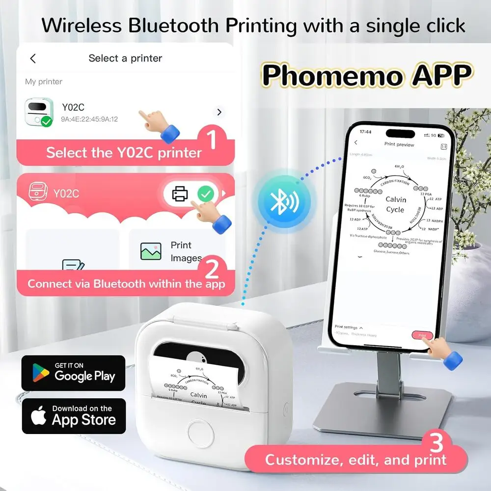 The Phomemo Y02C-DAD is a compact and portable Bluetooth thermal printer designed primarily for office and mobile use. It features a direct thermal printing method that eliminates the need for ink or toner cartridges. The device supports wireless Bluetooth connectivity compatible with both iOS and Android devices, enabling easy and quick printing via the Phomemo app. It uses thermal paper rolls with standard widths tailored for printing labels, notes, and small documents. The printer is powered by a rechargeable lithium-ion battery, ensuring convenient, cordless operation for on-the-go printing tasks. Overall, the Y02C-DAD combines portability with efficient printing technology aimed at small office environments and mobile professionals.