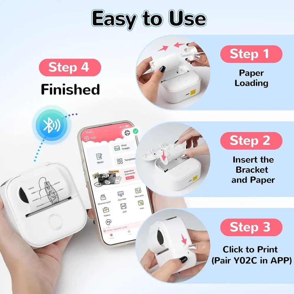 Included Components | 1* Y02C bluetooth printer, 1*Thermal Printer Quick Start Guide, 1*USB-C power cord for inkless note printer, Paper |