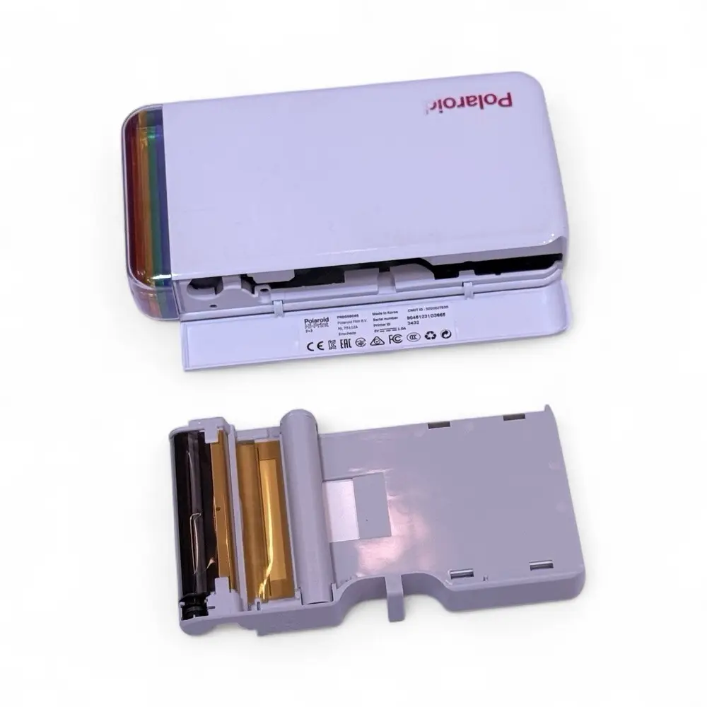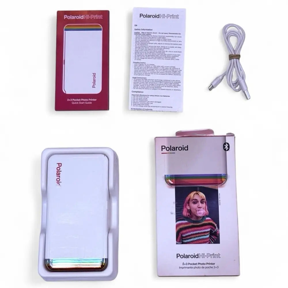 The Polaroid Originals 9046, part of the Polaroid Hi-Print series, is a portable photo printer designed for high-quality instant prints. This device uses dye-sublimation thermal transfer technology to produce vibrant, 2x3 inch photos with a 300 dpi resolution. It supports connection via Bluetooth to smartphones and tablets for convenient photo printing on the go. The compact design weighs approximately 235 grams, making it highly portable and user-friendly. The printer uses ZINK Zero Ink technology, eliminating the need for ink cartridges and ensuring smudge-proof, water-resistant prints. Integrated rechargeable lithium-ion battery supports multiple prints per charge, enhancing mobile usability.