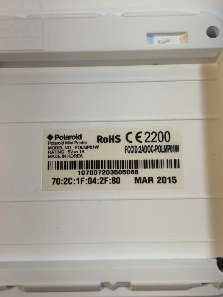 Model | Polaroid Portable Printer |