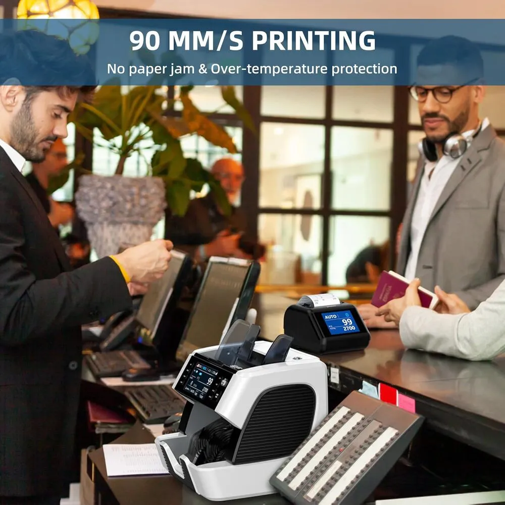 The printer can print at speeds up to 90 millimeters per second, enabling fast transaction processing.