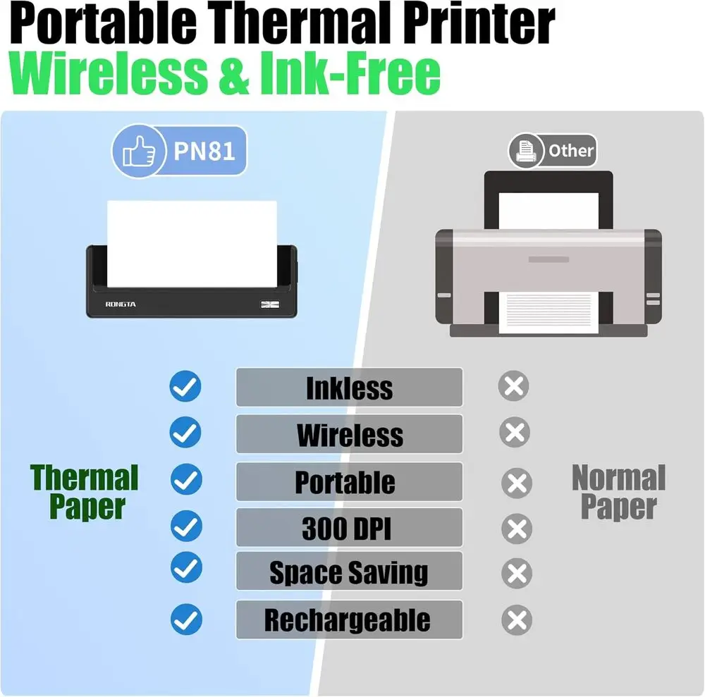 The Rongta F81 Portable Thermal Printer is a compact, lightweight device designed primarily for mobile printing applications. It utilizes direct thermal printing technology, which eliminates the need for ink or toner cartridges and facilitates low-maintenance operation. The printer supports high-speed printing with a resolution of 203 dpi, ensuring clear and precise printouts of receipts, labels, and tickets.