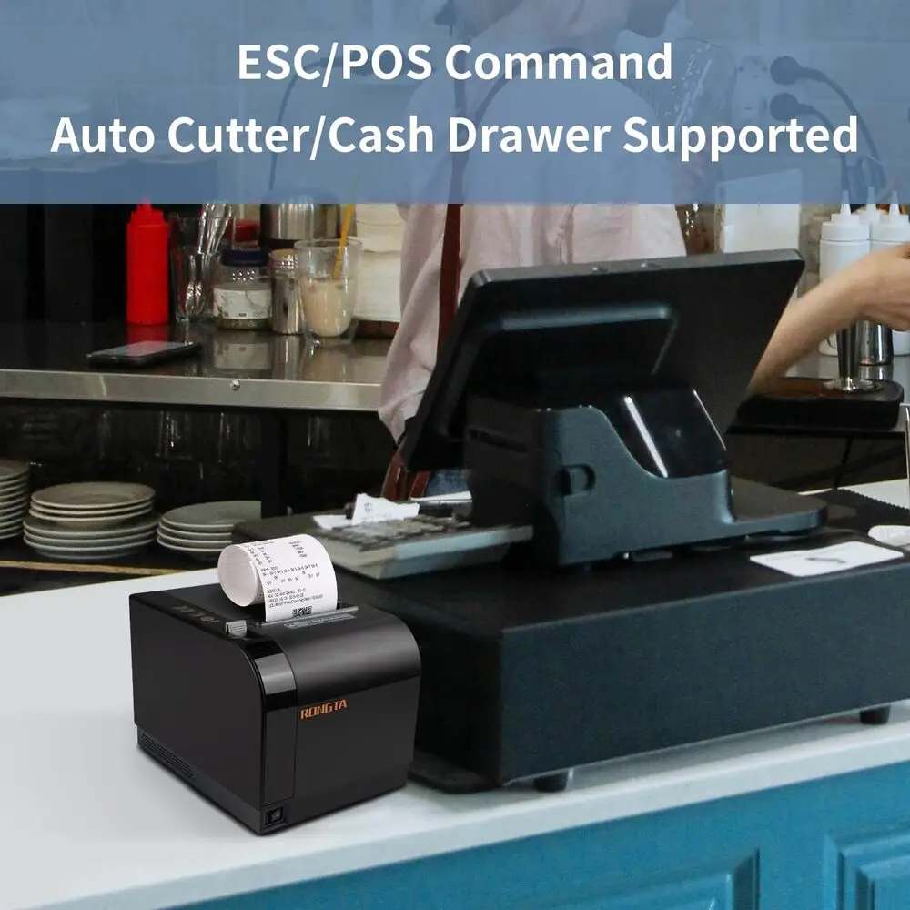 The Rongta RP820-USE, part of the RP326 series, is an advanced office electronics device designed primarily for printing and scanning applications in business environments. It features robust connectivity options including USB and Ethernet interfaces, allowing seamless integration into various network setups. The device supports high-resolution printing up to 203 dpi and offers efficient thermal printing technology for fast and reliable output. Equipped with an intuitive LCD display, it simplifies user interaction and operational control. It also includes compatibility with multiple operational systems, enhancing versatility. Its solid build quality ensures durability and consistent performance under heavy office workloads.
