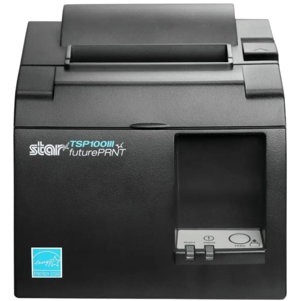 The Star Micronics TSP143IIIU is a high-performance thermal receipt printer designed for office and retail environments. It supports USB connectivity for seamless integration with various point-of-sale systems. This model features a fast print speed up to 250 mm/sec, ensuring efficient transaction processing. The printer uses direct thermal printing technology with a resolution of 203 dpi, delivering clear and legible receipts. It includes a built-in power supply for convenience and reduces the need for additional adapters. The device supports multiple paper widths, typically 80 mm, improving compatibility with different receipt formats.