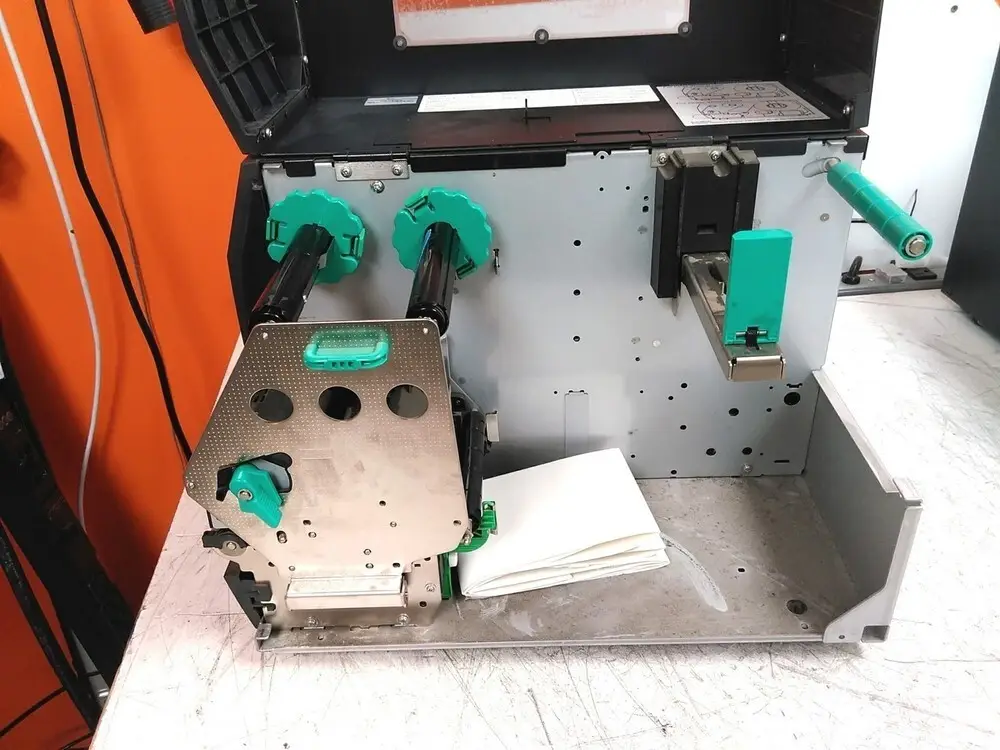 It uses thermal transfer printing technology suitable for durable label printing.