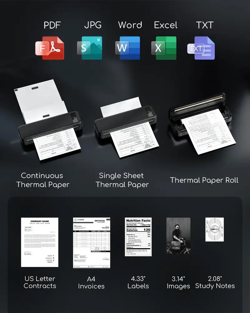 The precise printing technology is unspecified, but it is likely a basic inkjet or laser mechanism suitable for office printing.