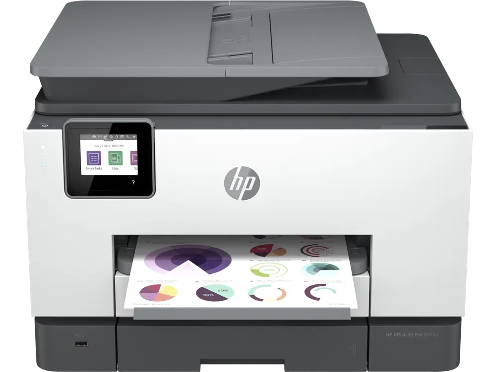 The HP OfficeJet Pro 9025e uses thermal inkjet technology for high-quality color and black-and-white printing.