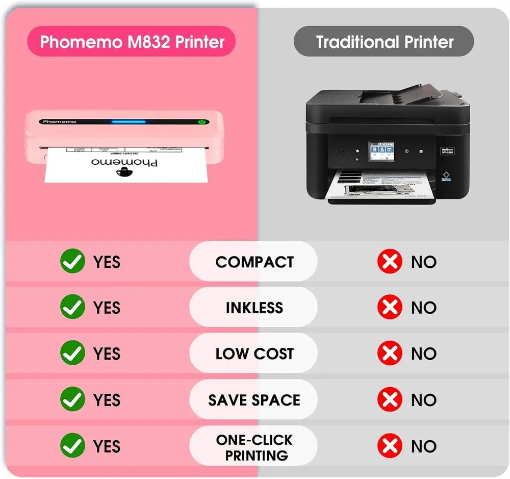 No, the M832 does not include wireless printing capabilities; it connects via USB only.