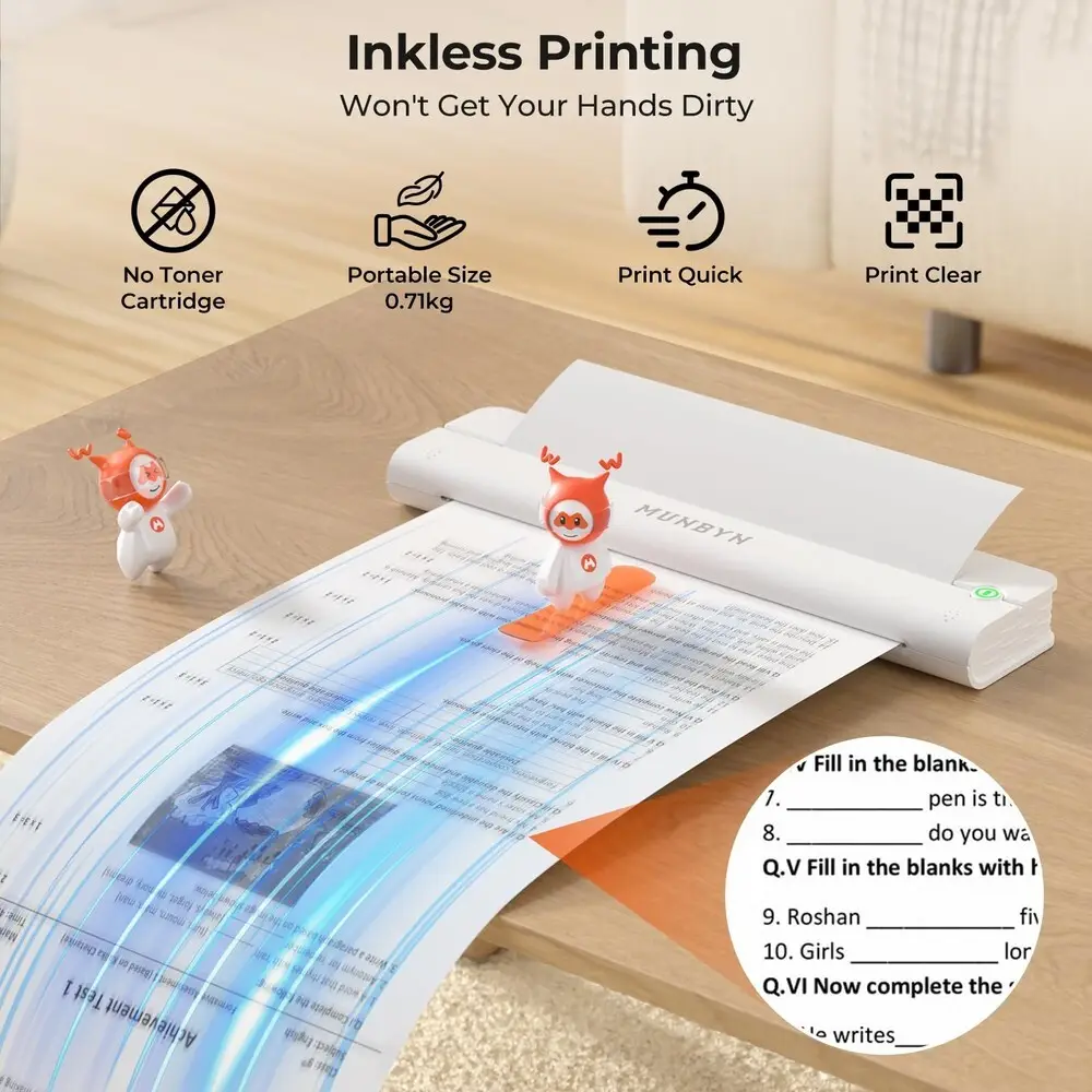 The Munbyn Portable Printer Itp02L is a compact, lightweight mobile printing device optimized for on-the-go office environments. It features a built-in thermal printing mechanism that does not require ink cartridges, enhancing portability and operational simplicity. Connectivity is supported via Bluetooth and USB interfaces, enabling compatibility with multiple operating systems including Windows, Android, and iOS. The device supports label and receipt printing with a maximum print width of 48 mm and a print resolution of 203 DPI, ensuring clear and precise outputs. Power is supplied by a rechargeable lithium-ion battery, providing several hours of continuous usage per charge. Its robust design combines portability with functionality for efficient mobile printing solutions.