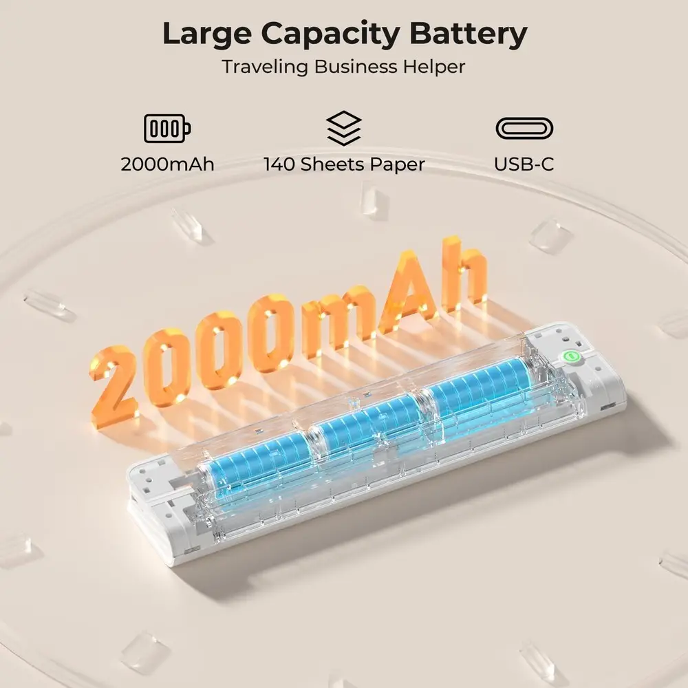 The rechargeable battery can typically support several hours of continuous printing depending on usage.