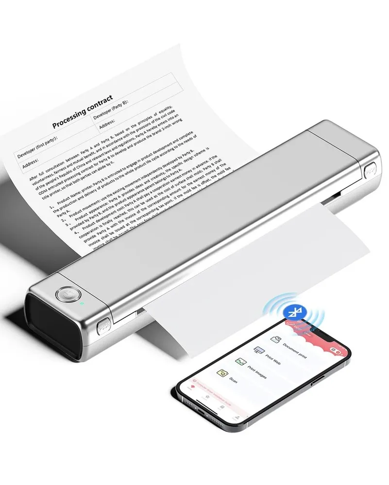 The Phomemo M08F is a compact thermal printer designed specifically for label and receipt printing in office environments. It employs direct thermal printing technology which eliminates the need for ink or toner cartridges, making it efficient and low-maintenance. The device supports high-resolution printing up to 203 dpi, ensuring crisp and clear output suitable for barcodes, text, and simple graphics. Connectivity options typically include USB and Bluetooth, allowing versatile use with computers, smartphones, and tablets. Its portable design combined with a rechargeable lithium battery makes it ideal for mobile printing needs. The printer supports various label sizes and media thicknesses, providing flexibility for different office requirements.
