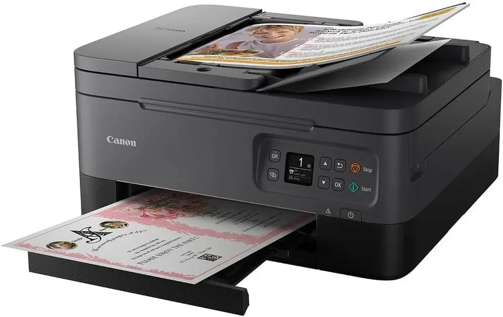 The print speed is moderate and might not meet the demands of high-volume professional settings. The printer does not support automatic two-sided printing, requiring manual page flips for duplex printing. It lacks an automatic document feeder, which limits productivity during scanning or copying multiple pages. Compared to laser printers, the output durability for heavily-used documents might be less robust. The device could generate noise under certain operating conditions. Its memory and processing capabilities may be limited for complex or high-resolution tasks.