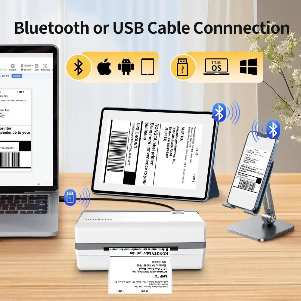 The Bluetooth Thermal Label Printer Bluetooth+USB model integrates wireless Bluetooth and wired USB connectivity to offer versatile printing solutions for office environments. Featuring thermal direct printing technology, it eliminates the need for ink or ribbons, allowing for cost-effective and maintenance-free operations. It supports various label widths and resolutions, typically up to 203 dpi, enabling crisp and clear label printing for shipping, inventory, and asset tracking applications. The device is compatible with multiple operating systems including Windows, macOS, and mobile platforms via Bluetooth. Its compact and lightweight design ensures easy placement in constrained office spaces, while quick label loading mechanisms improve user convenience. Power is supplied through an integrated adapter, enabling stable and continuous operation during high-volume label printing tasks.
