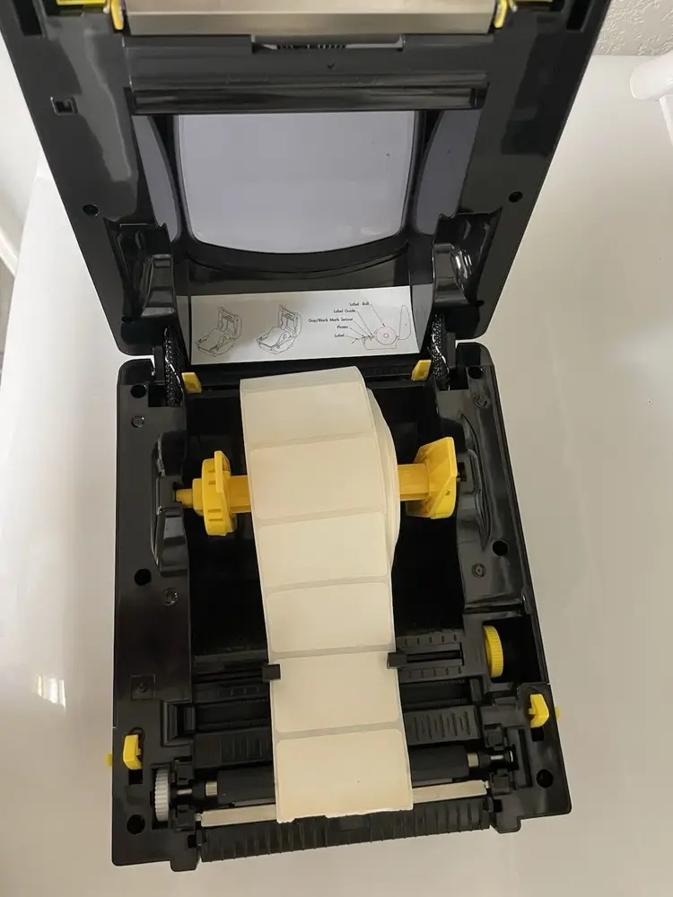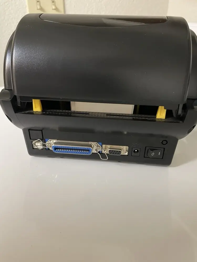 The printer has a maximum resolution of 203 dpi, suitable for standard barcode and text printing applications.