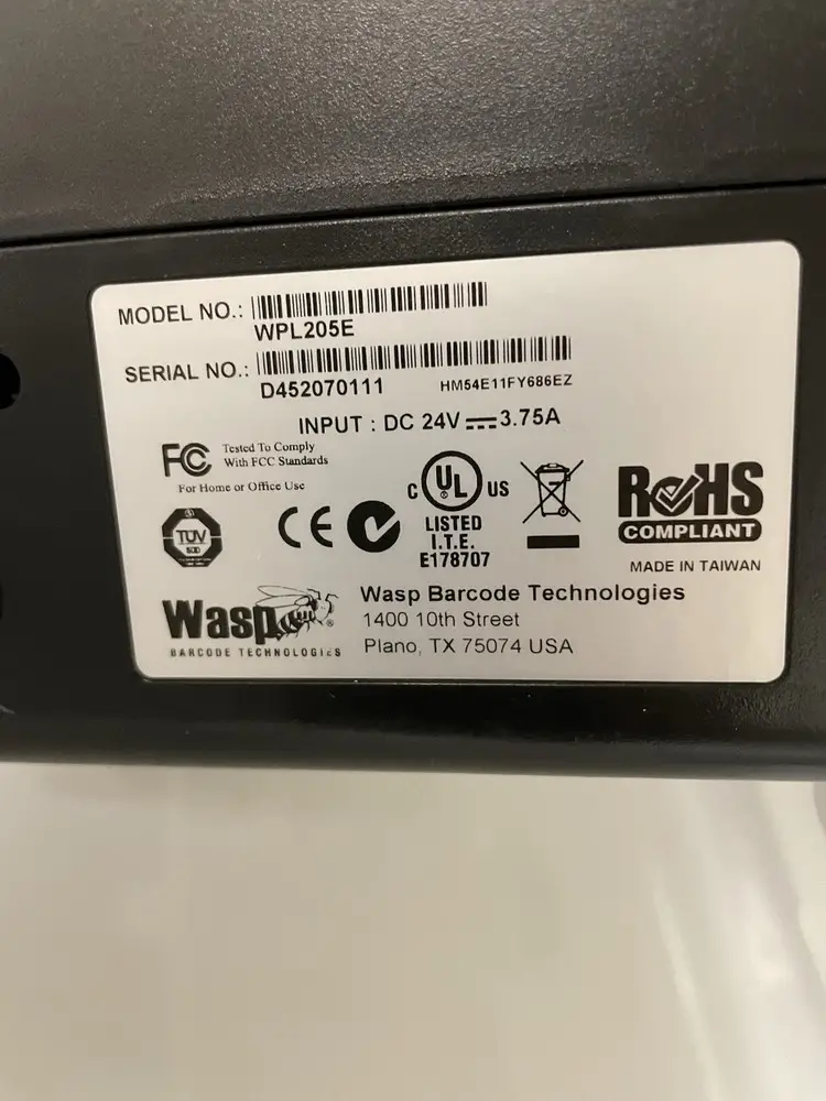 The Wasp WPL205e is a rugged mobile barcode printer designed for office and field environments requiring on-the-go label printing. It uses direct thermal printing technology with a resolution of 203 dpi, producing clear barcodes and text. The device supports multiple connectivity options including USB, Bluetooth, and Wi-Fi for versatile integration. Powered by a rechargeable battery, it ensures extended operation during mobile tasks. The printer supports label widths up to 2.2 inches (56mm) compatible with various label materials. Its compact and durable build makes it suitable for logistics, retail, and healthcare applications.