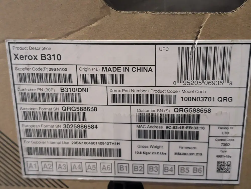 The Xerox B310 is a monochrome laser printer designed for office use.