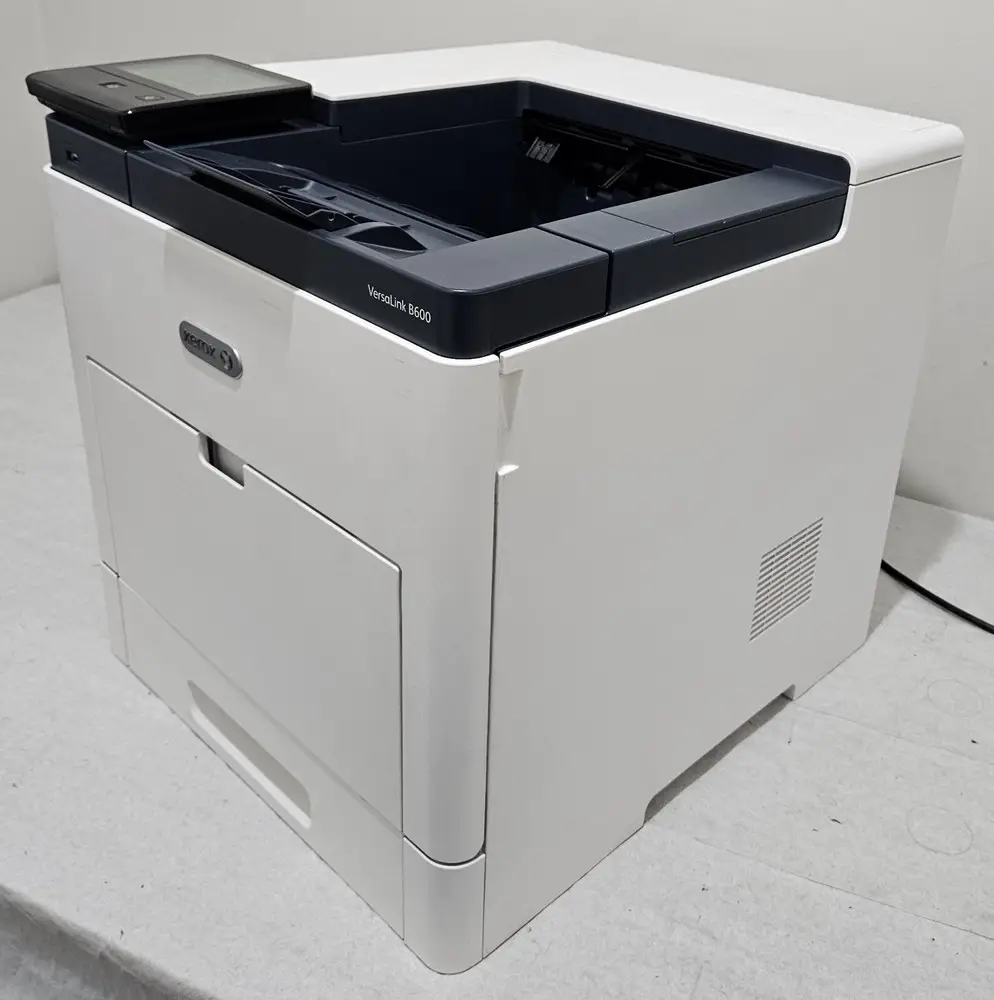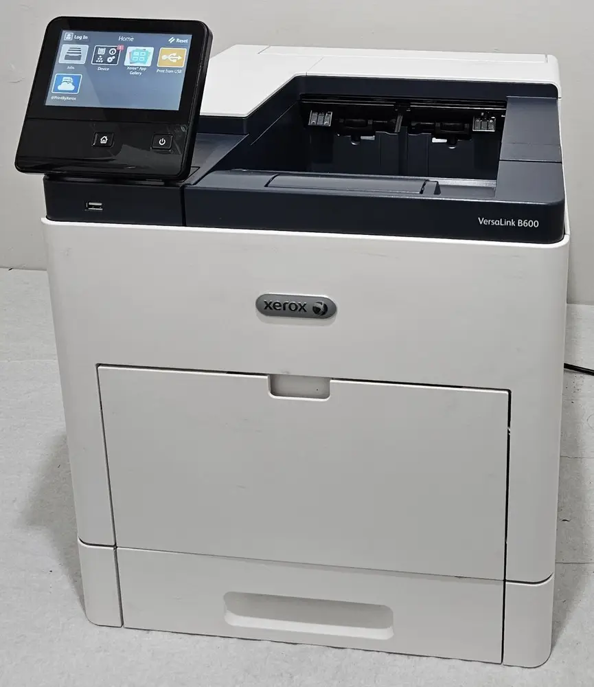 The Xerox VersaLink B600DN is a robust monochrome laser printer designed for high-volume office environments. It features fast print speeds up to 47 pages per minute and supports advanced connectivity options including Ethernet and USB 3.0. The printer uses a 1.05 GHz quad-core processor combined with 2 GB of standard memory, ensuring efficient handling of large and complex print jobs. It supports a maximum print resolution of 1200 x 1200 dpi for sharp text and graphics output. The B600DN incorporates an intuitive 5-inch color touchscreen interface for easy navigation and configuration. Additionally, it offers versatile media handling with a standard paper capacity of up to 700 sheets, expandable to 2,300 sheets for high productivity needs.