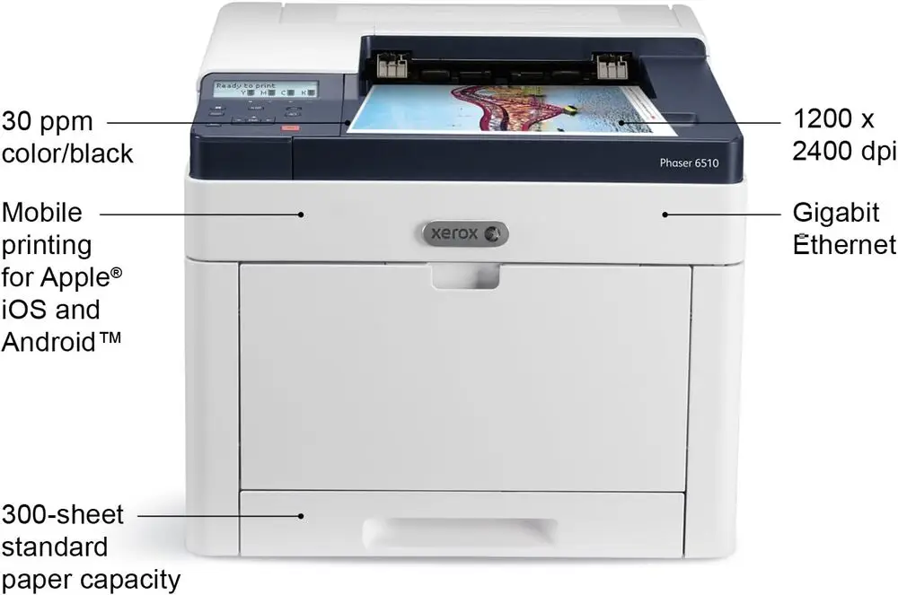 The Xerox 6510/N uses monochrome laser printing technology to produce sharp and professional print quality.