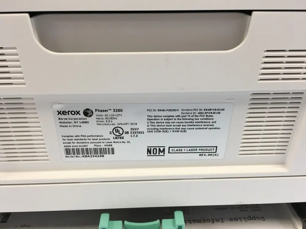 The Xerox Phaser 3260 is a compact monochrome laser printer designed for small to medium office use. It operates at a print resolution of 1200 x 1200 dpi, ensuring sharp and clear text output. The printer supports a print speed of up to 29 pages per minute, making it efficient for daily document printing. Connectivity is provided through USB 2.0 and optional wireless networking, allowing flexible placement in the workspace. The Phaser 3260 supports standard paper sizes, including A4, letter, and envelopes, with an input capacity of 150 sheets. It uses a fixed drum and toner cartridge system to simplify maintenance and reduce downtime.