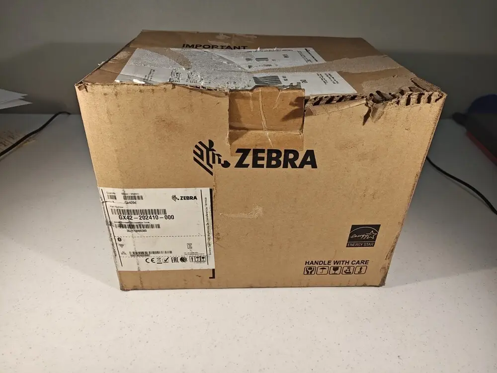 The Zebra GX42-202410-000 is a compact desktop thermal transfer and direct thermal printer designed for office and retail environments. It supports a maximum print width of 4.09 inches (104 mm) and offers print speeds up to 4 inches per second, suitable for medium volume label printing tasks.
