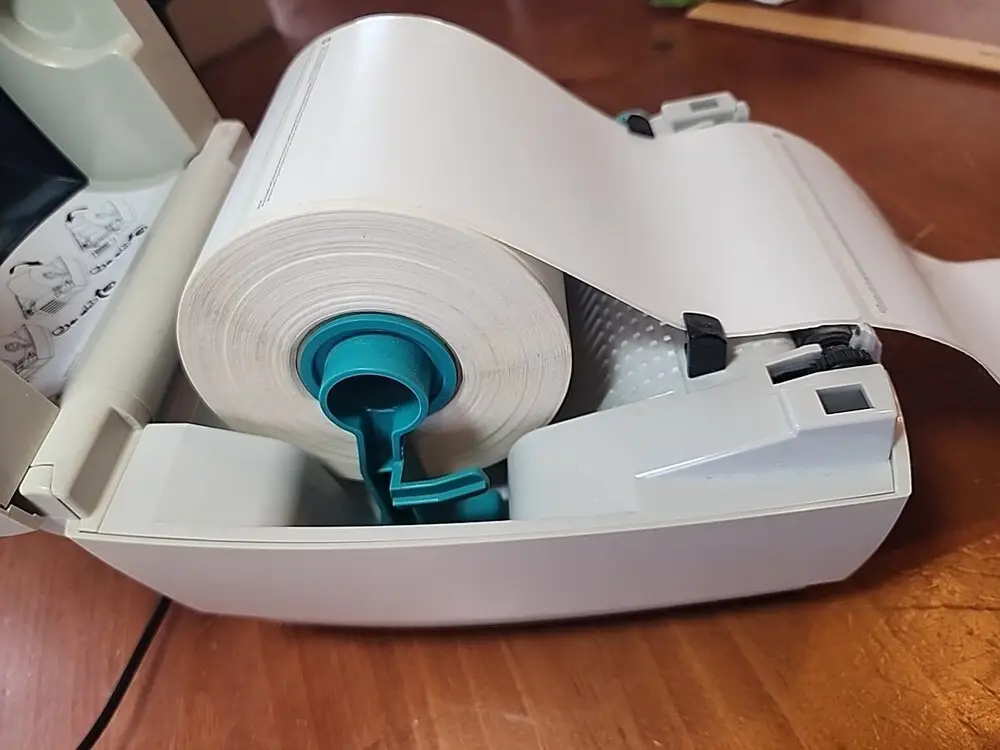 The LP 2844 supports standard direct thermal labels, tags, and receipt media suitable for office and light industrial use.