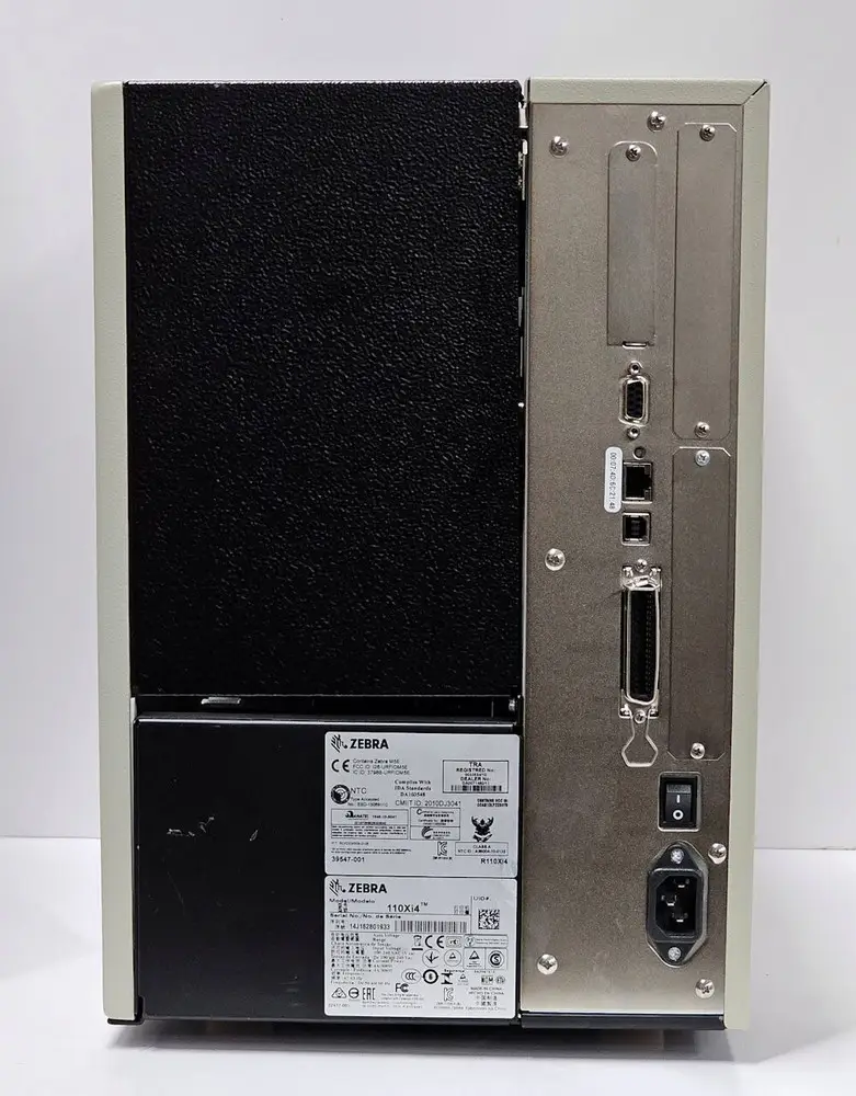 The Zebra R110Xi4 uses thermal transfer and direct thermal printing technologies.