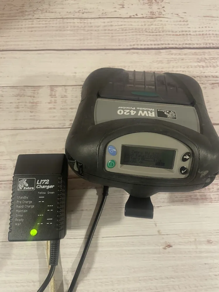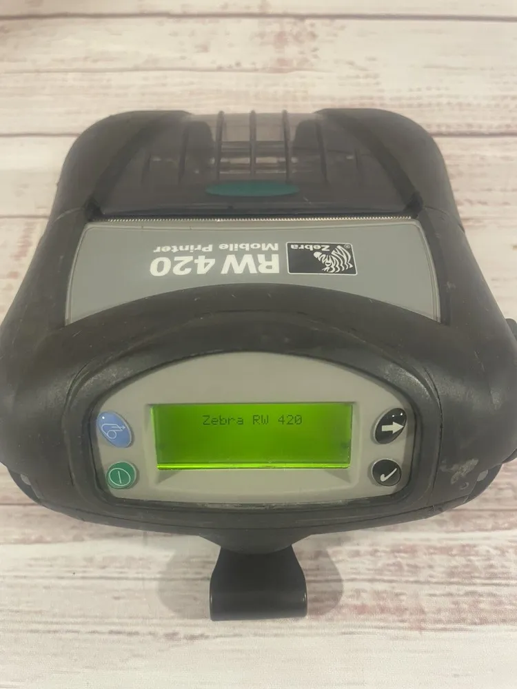 The Zebra RW420 BT is a compact mobile printer designed primarily for on-the-go label and receipt printing in various business environments. It utilizes thermal printing technology, which eliminates the need for ink or toner cartridges, reducing maintenance and operational costs. The device features Bluetooth connectivity, enabling wireless communication with compatible mobile devices for convenient printing without cables. Equipped with a print resolution of 203 dpi, the printer ensures clear and readable barcodes and text. Its battery-powered design allows for portability, with an approximate print speed of up to 4 inches per second. The printer supports various media types, including continuous and die-cut labels.