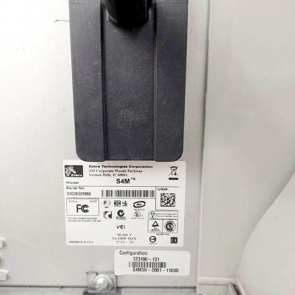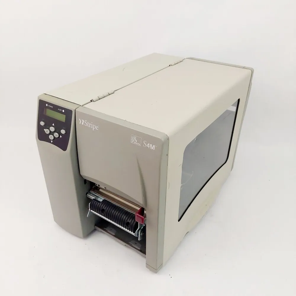 The Zebra S4M is a thermal transfer and direct thermal printer designed primarily for barcode labeling and industrial office applications. It utilizes 203 dpi thermal print technology, providing clear, precise print quality for various label types. The device supports multiple connectivity options including parallel, serial, and optional Ethernet interfaces, allowing versatile integration into different IT environments. Featuring a robust metal frame construction, the printer offers durability suitable for medium-volume print demands in warehouse and manufacturing settings. Its ribbon and media handling mechanisms support roll widths up to 4.09 inches and print widths up to 4.09 inches, optimized for efficient label production. The S4M also includes built-in Emulations such as EPL and ZPL, ensuring compatibility with existing Zebra and non-Zebra systems.