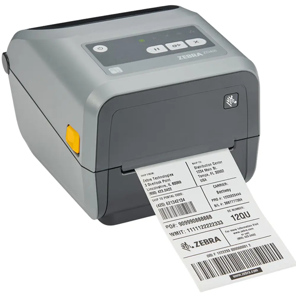 The Zebra ZD4A042-30EM00EZ offers high-resolution printing at 300 dpi, producing sharp and readable labels ideal for detailed barcodes and small fonts.