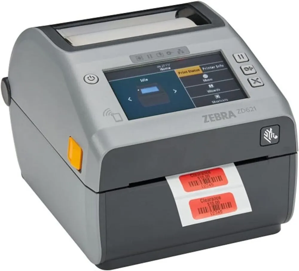 The Zebra ZD621 is an industrial desktop label printer designed for high performance printing tasks in office and warehouse environments. It uses thermal transfer and direct thermal printing technology to deliver high-quality labels at speeds up to 8 inches per second. The printer supports resolutions of 203 dpi and 300 dpi, making it suitable for detailed barcode and text printing. It features a dual-core 1 GHz processor and 512 MB RAM along with 512 MB flash memory for efficient print job handling. Connectivity options include USB, Ethernet, and optional Wi-Fi and Bluetooth, ensuring flexible integration. The printer supports multiple barcode symbologies and has a user-friendly LCD interface for easy operation and configuration.