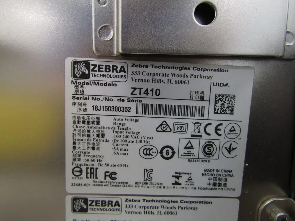 The Zebra ZT410 is a robust industrial label printer designed for high-volume printing applications. It offers a print resolution of up to 300 dpi, delivering crisp and precise labels for various sectors such as manufacturing, healthcare, and logistics. The device features a durable metal frame construction for extended service life in demanding environments. It supports multiple connectivity options including USB, Serial, and Ethernet interfaces, ensuring flexible integration into existing systems. The ZT410 uses Zebra's LINK-OS environment, allowing easy remote management and configuration through compatible software tools. Additionally, it supports a wide range of media types and sizes, enhancing its versatility in diverse printing tasks.