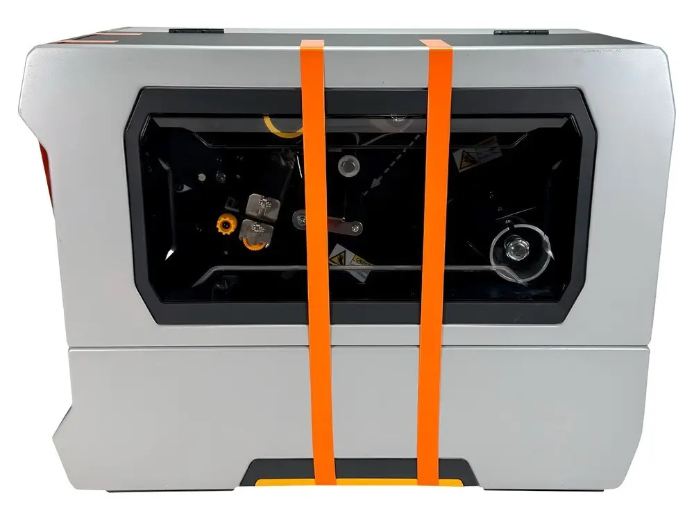 The peel rewinder automatically peels printed labels for easier application and handling.