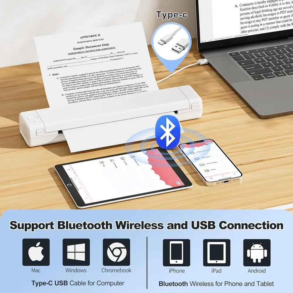 Included Components | 1 X M08F Printer, 1 X Test 8.5"x11" Thermal Paper, 1 X Type-C Adapter, 1 X USB Type-C Cable, 1 X Velvet Carry Bag |